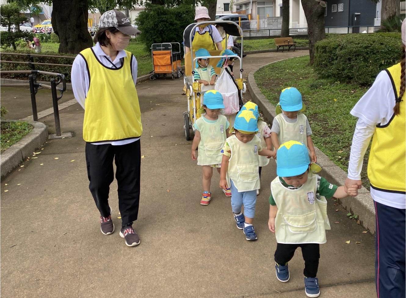 お散歩に行きました! 梅雨が明けてから、いっきに暑い夏日が続いていますね☀️ いとほし保育園では、天気がいい日に同じ服を着て散歩に行きます♪ この日は、散歩途中にダンゴムシがいたので、みんなでじっくり観察しました!👀 触ると丸くなるダンゴムシに興味津々な子どもたち✨ なんだか夏らしいですね♪ 暑いので、しっかり水分補給もします! みんな上手に座って、何杯もおかわりをしました!! 今年はどんな夏らしいことをしようかな〜?☀️ 楽しみだね!✨