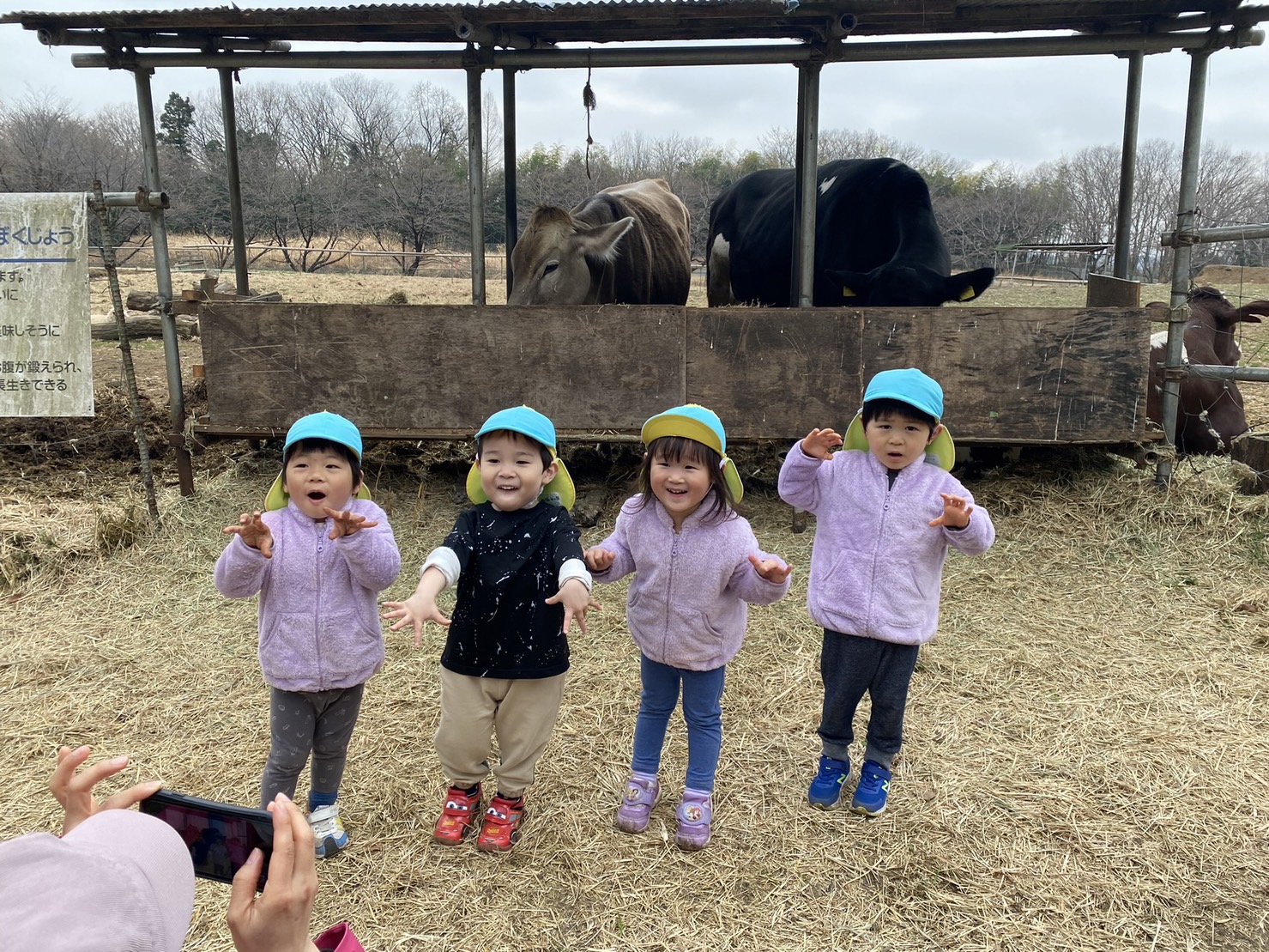 お別れ遠足 3月17日 今日は、ほし組さんのお別れ遠足でした。 なんと、目的地までは、約4.2キロの距離でしたが、 「牛🐄さんとヤギ🐐さんに会える!そして、ソフトアイスを食べる!」ことを 目標にしてみんな頑張りました! 最後は、念願のソフトアイス(アイスクリーム)を食べ大満足❣️