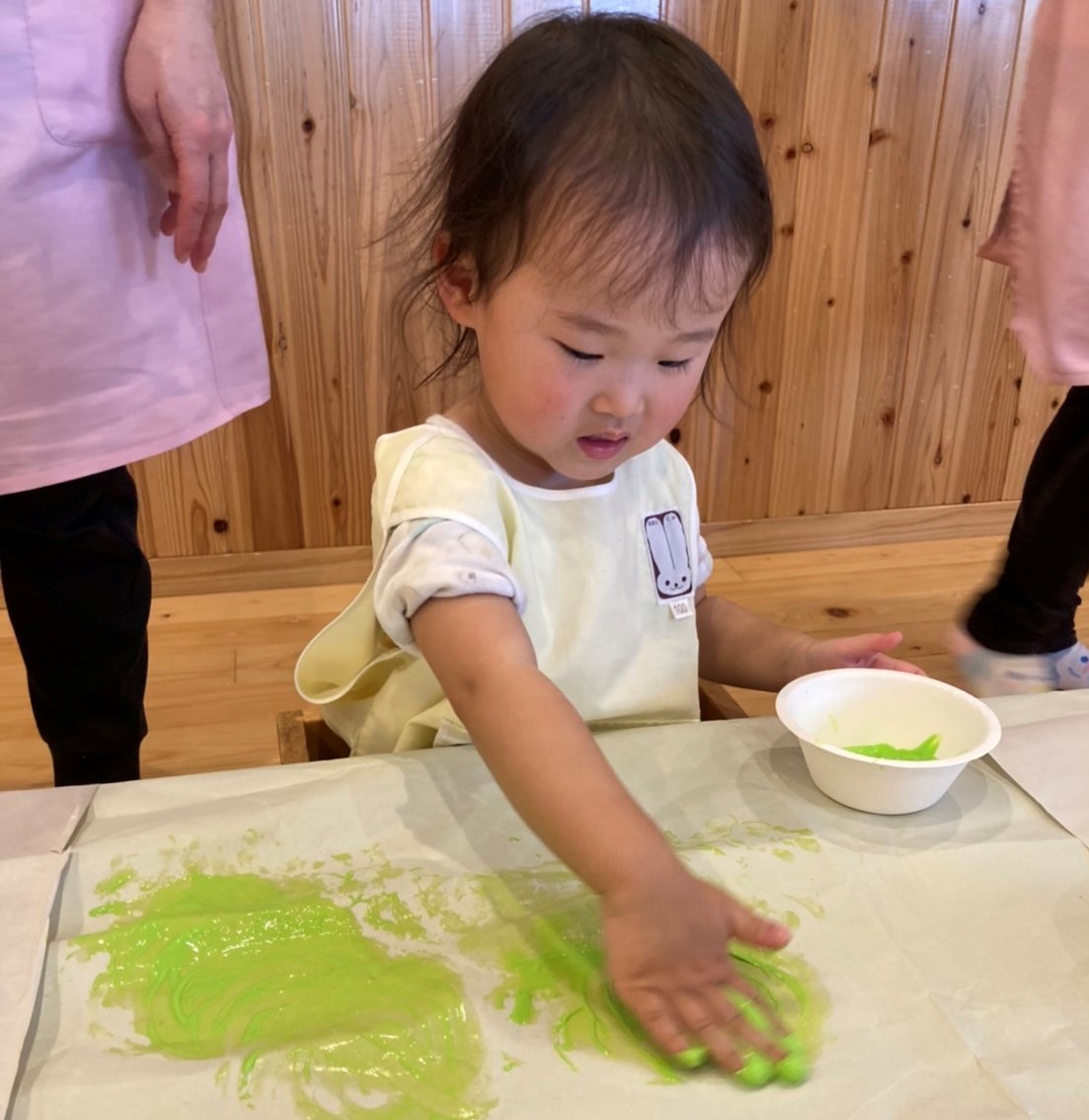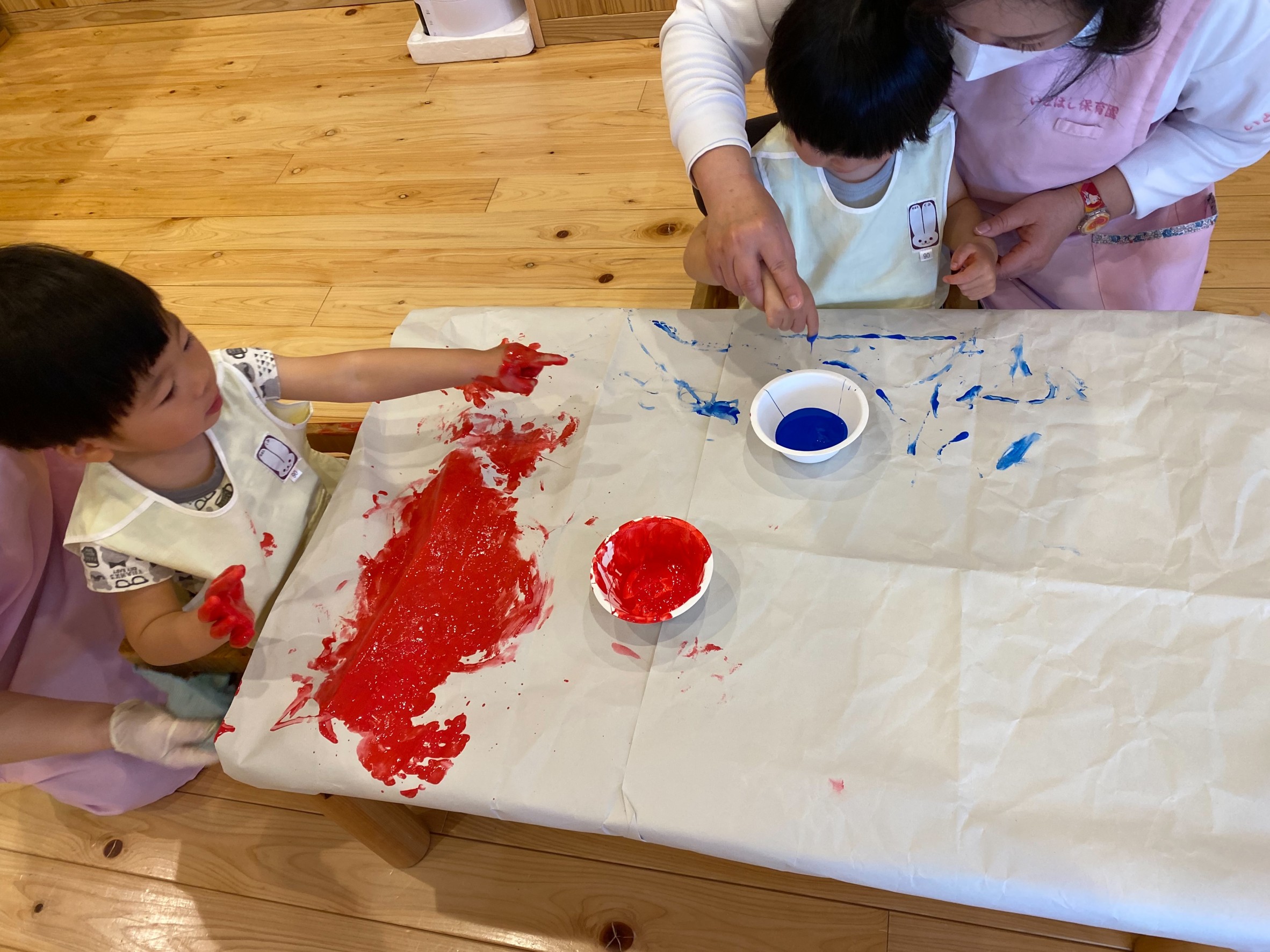 フィンガーペインティングをしました!♪ 今日はフィンガーペインティングをしました!✨ 好きなだけ手のひらや指に色をつけて楽しくぬりぬり~❣️ 豪快に手の平全体に色を付けてみたり、慎重に指先だけに色を付けてみたり・・・(^^♪ 赤・青・・・これは何の色だろう~??👀 クルクルクル🌀 ぬりぬりぬり♪ 両手で書き書き!! 何を書いているんだろう~??☺ 普段あまり出来ない遊びができてみんな大満足でした!!♪ またやろうね~♪