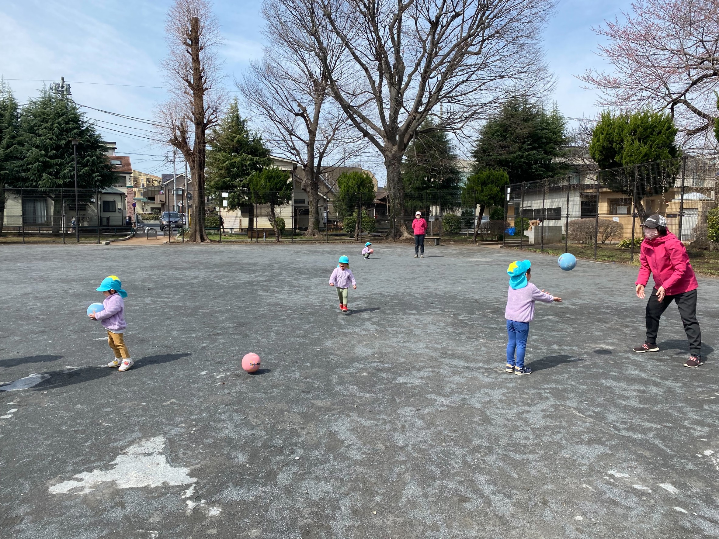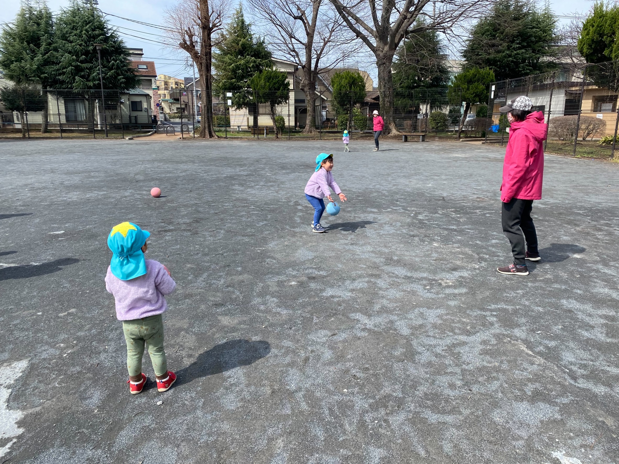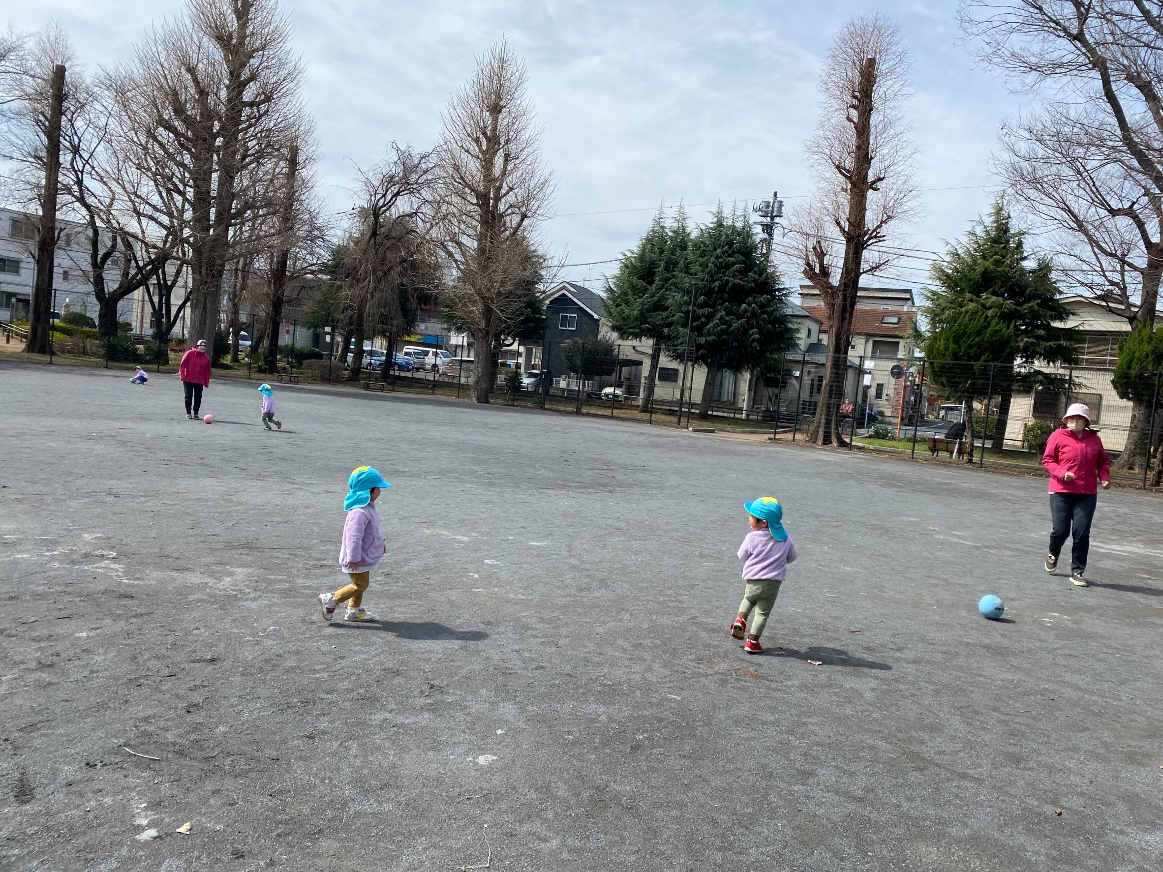 公園でボール遊び!!⚽ 今日はお天気が良かったので、お散歩に出かけました☀ 公園に行き、みんなでボール⚽遊びを楽しんできました!!♪ ボールを上に高くポーンと投げて遊ぶ子もいれば、 ボールを蹴って、必死に追いかける子もいました!!! ボールが早く追いかけるのに必死でしたが、 元気いっぱいにたくさん走りましたよ!! みんなそれぞれ好きな遊びをして楽しんでいました(^_-)-☆☆彡