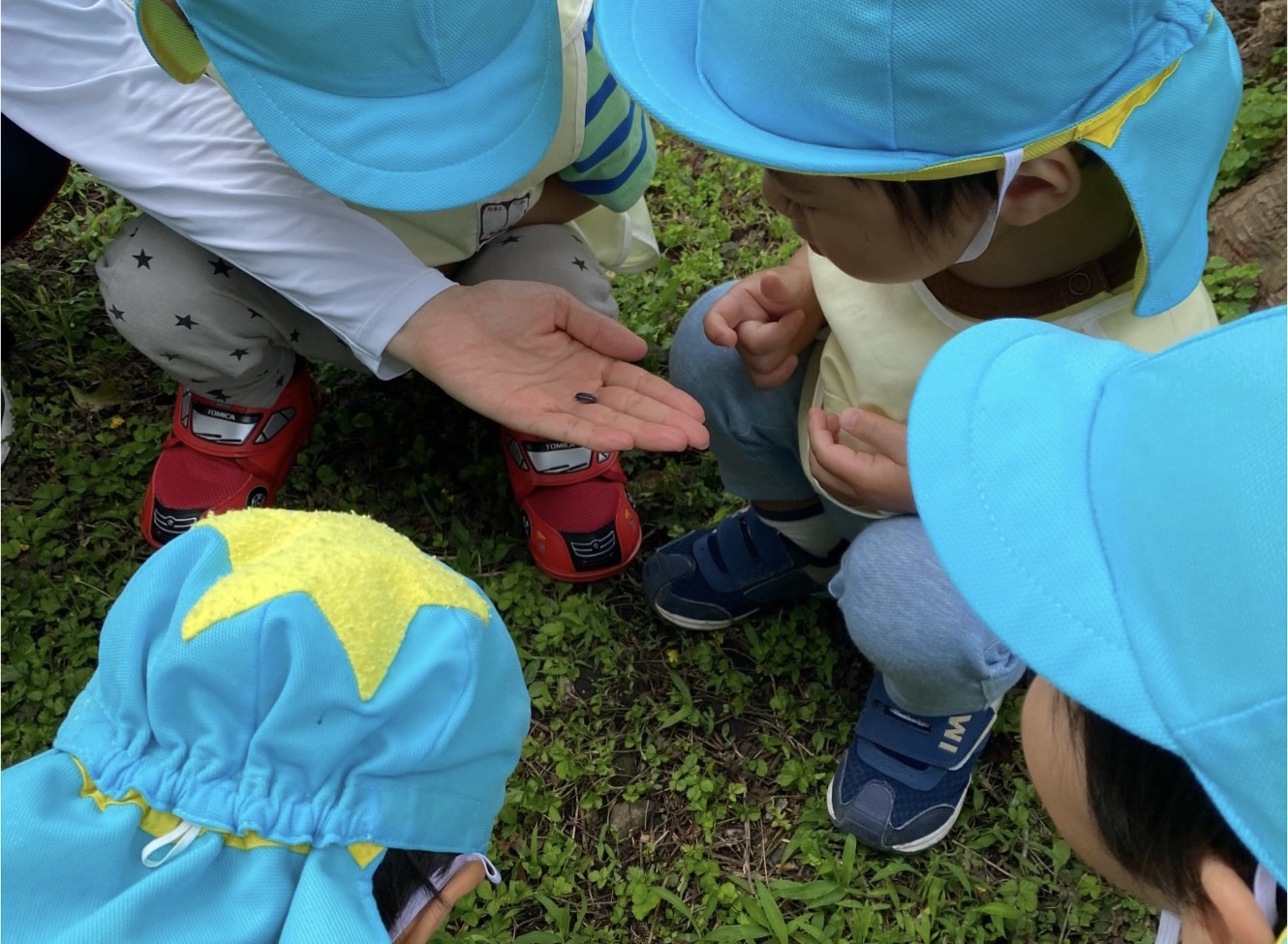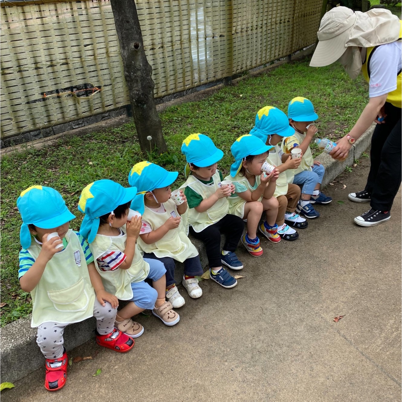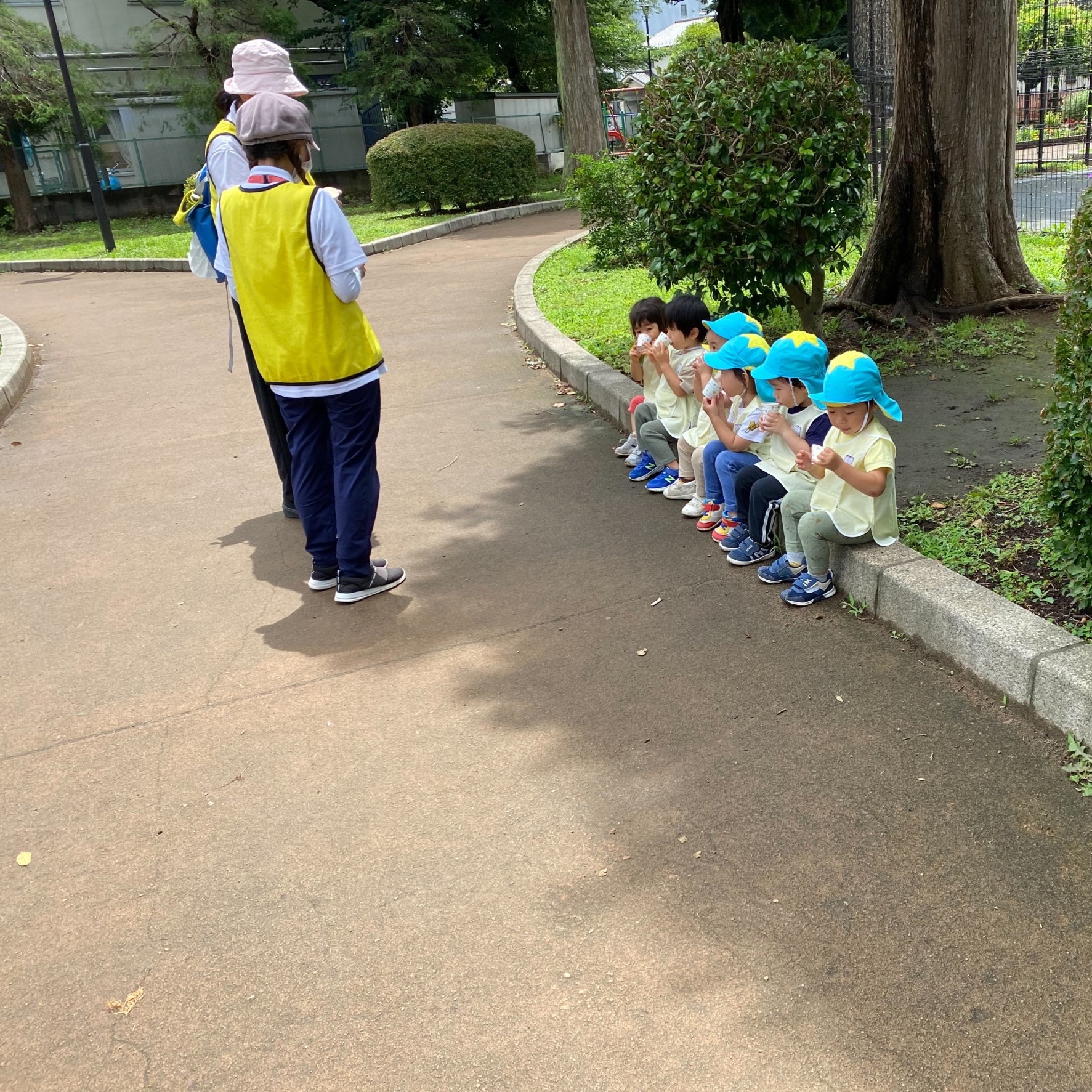 お散歩に行きました! 梅雨が明けてから、いっきに暑い夏日が続いていますね☀️ いとほし保育園では、天気がいい日に同じ服を着て散歩に行きます♪ この日は、散歩途中にダンゴムシがいたので、みんなでじっくり観察しました!👀 触ると丸くなるダンゴムシに興味津々な子どもたち✨ なんだか夏らしいですね♪ 暑いので、しっかり水分補給もします! みんな上手に座って、何杯もおかわりをしました!! 今年はどんな夏らしいことをしようかな〜?☀️ 楽しみだね!✨