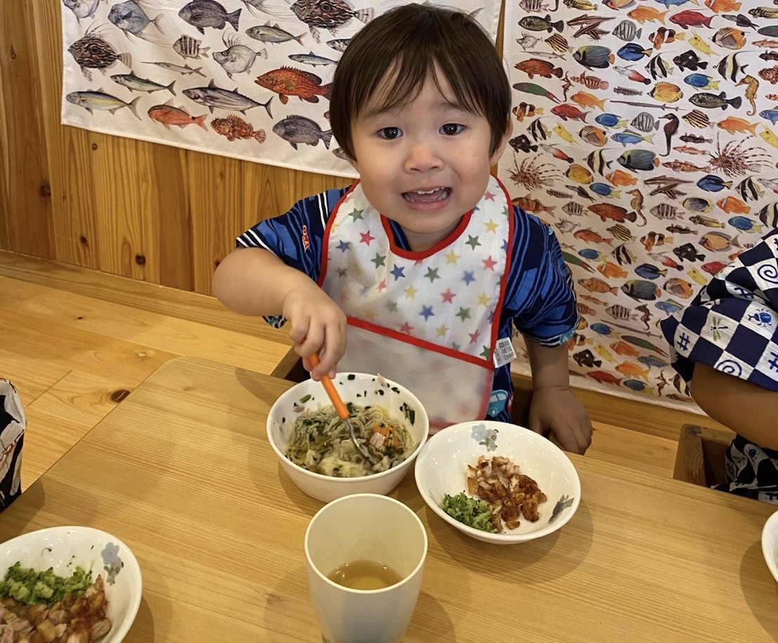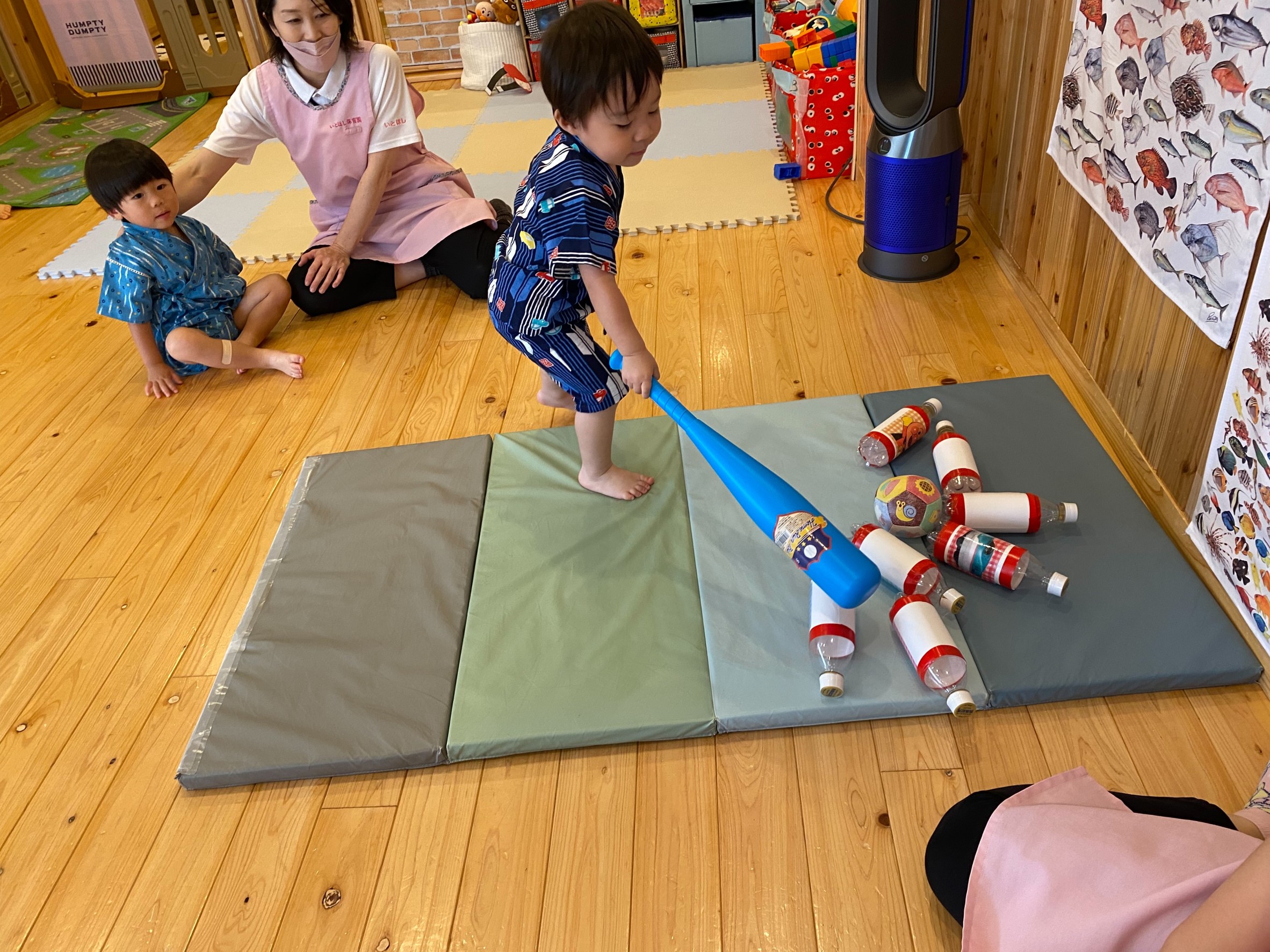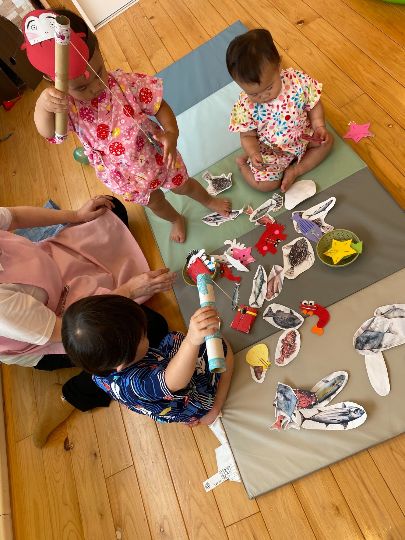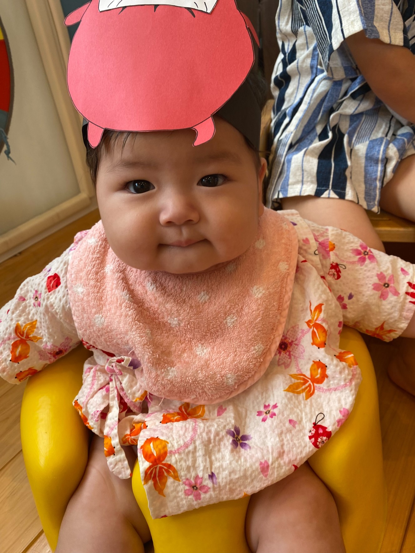 七夕祭り 今日は七夕祭りをしました!🎋🌠✨ みんな可愛らしい甚兵衛を着て、魚釣り🐠、ボーリング🎳、ヨーヨー🪀、スイカ割り🍉などを楽しみました!♪♪ みんなで作った御神輿を担いで、「ワッショイ!ワッショイ!」と大盛り上がりでした✨ また、だるまさんシリーズの絵本が大好きなので、今年はだるまさんのお面をかぶって集合写真も撮りました!📸 乳児さんもなんだから嬉しそう!☺️ 最後は、みんなで七夕給食を美味しく食べました💗🍽 これからもたくさん楽しいことして遊ぼうね〜🌟